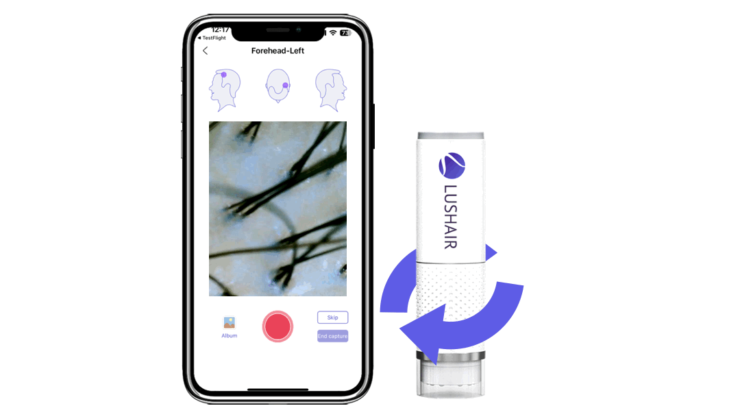 How To Use Scan, Analyze, Transform – Get AI-Powered Hair Insights in 3 Simple Steps! DOWNLOAD APP GET LUSHAIR Power on the device and pair it with your phone via Wi-Fi. Step 1. Turn On & Connect Position the dermatoscope to 7 different spots, then capture scalp & follicles clearly. Step 2. Take Clear Pictures Receive instant AI-driven insights and personalized recommendations. Step 3. Upload for AI Analysis